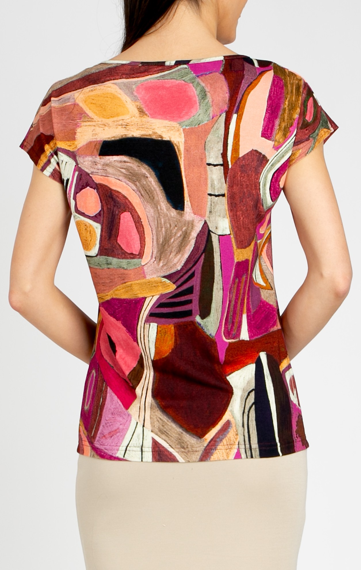 Блуза в свободен силует в абстрактен принт в Brick и Fuchsia