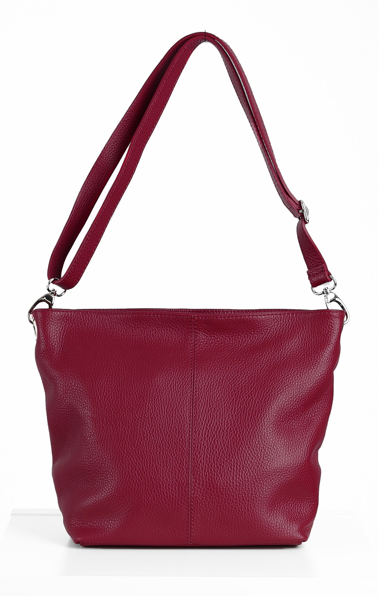 Изчистена дамска чанта от мека естествена кожа в цвят Wine Red