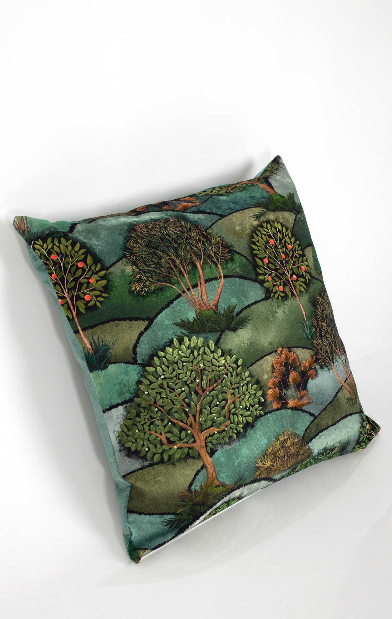 Декоративна калъфка за възглавница от висококачествена материя, произведена в Холандия с принт - горски пейзаж и едноцветен кадифен гръб. Разположението на принта може да варира! Размери: 45/45 см *Размерът може да варира с +/-2 см