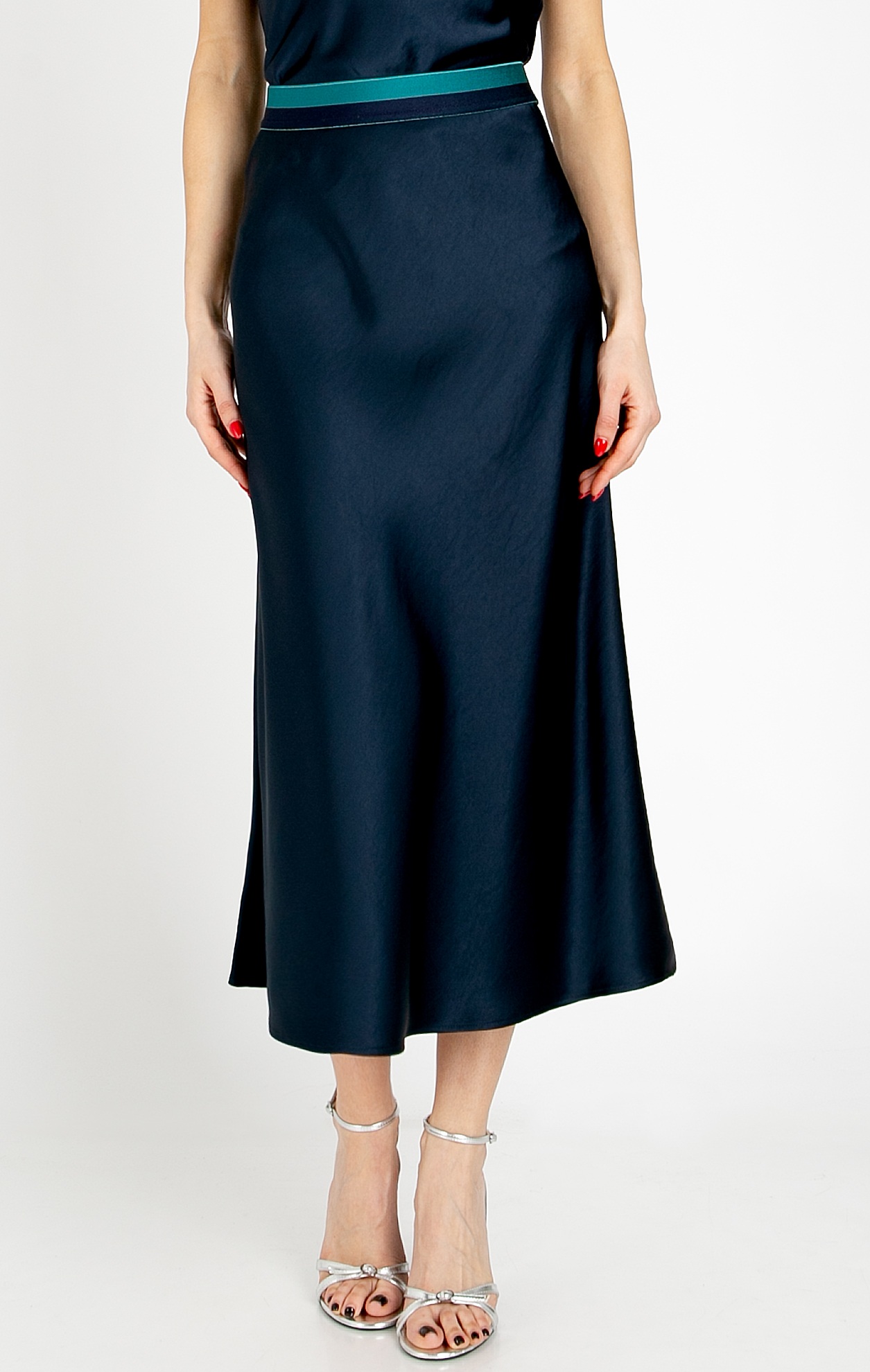Елегантна пола от сатен в цвят Evening Blue