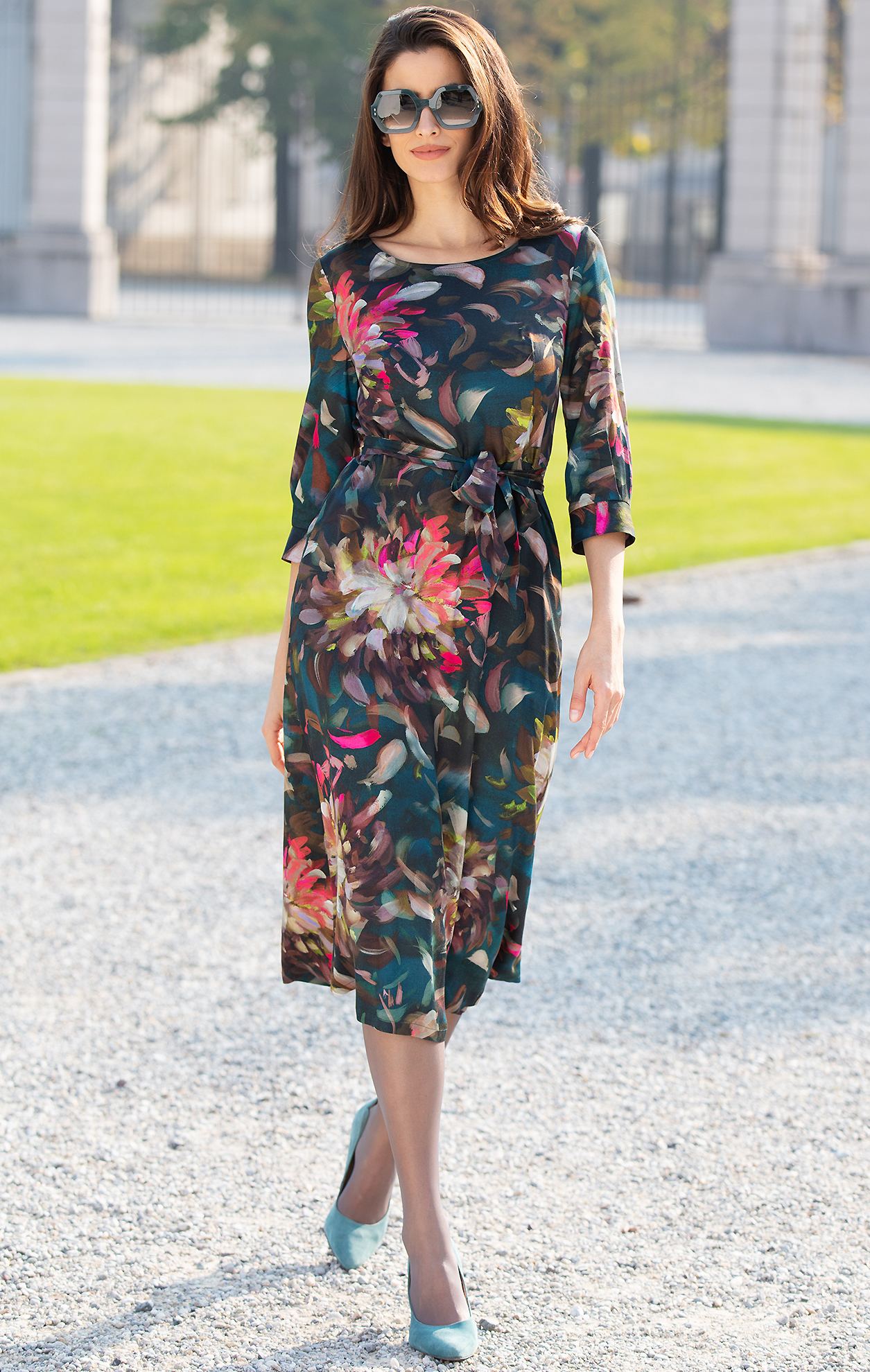 Елегантна рокля от луксозна вискоза в зелено “Ocean Depth” с живописен флорален принт