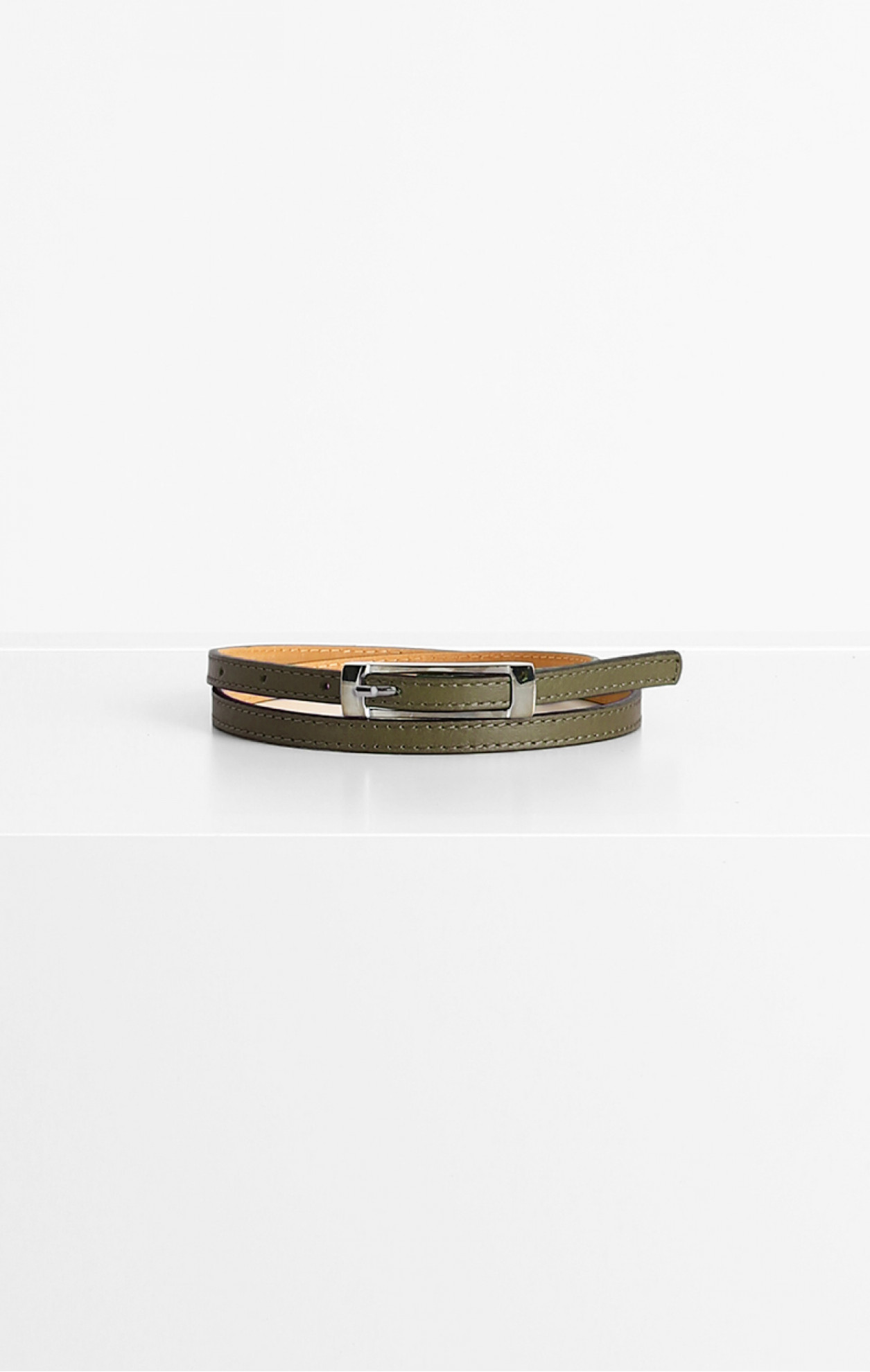 Елегантен колан от естествена кожа, в цвят Green Olive, изработен в Италия по поръчка на Дафне. Страхотно се съчетава с рокли или панталони от нашата колекция. Ширина: 1 см