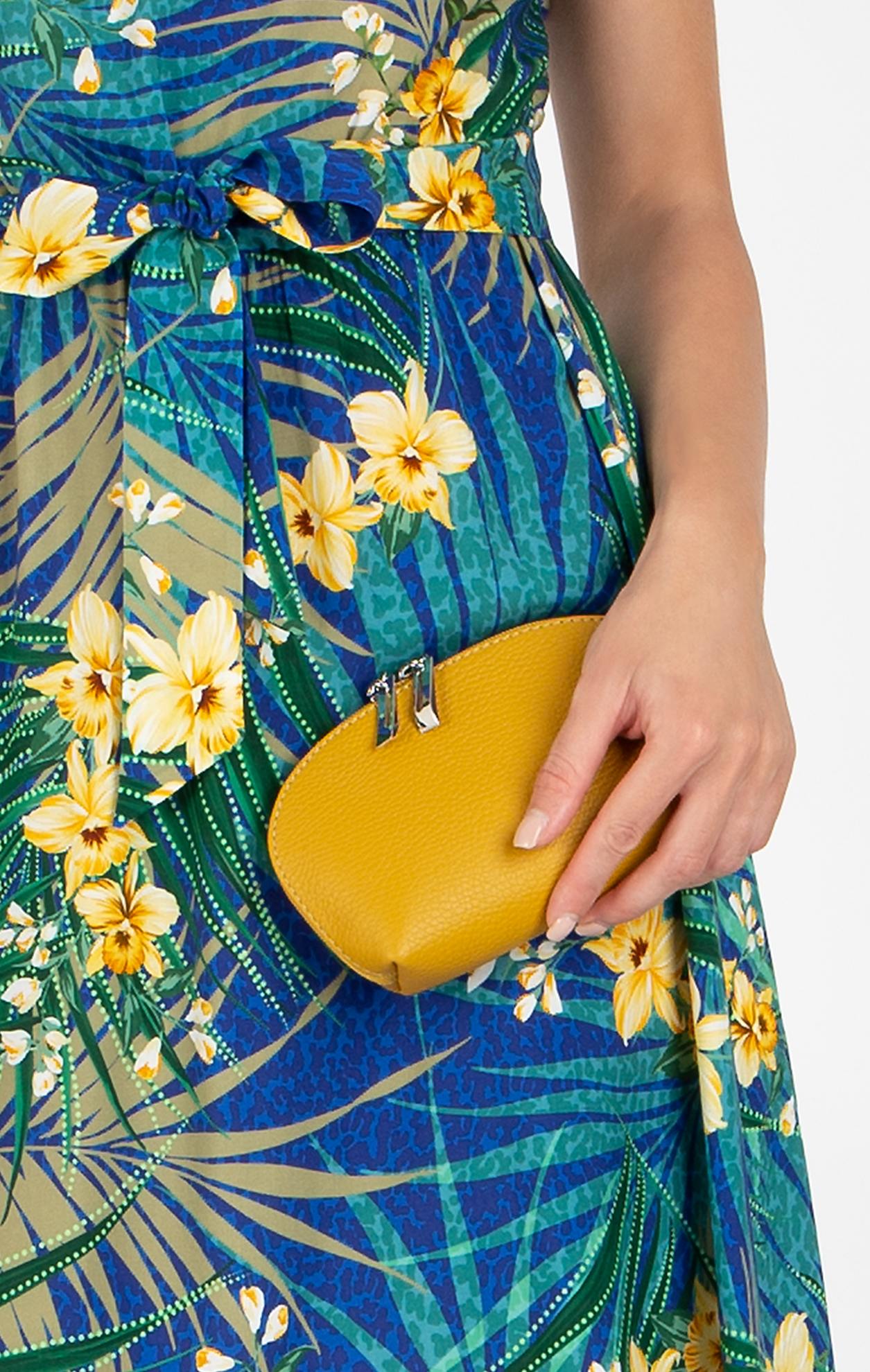 Малък стилен несесер от естествена кожа в ярък цвят Mustard. Несесерът е с компактни размери и едно основно отделение, което се закопчава с цип. Моделът може да бъде използван както като допълнителен несесер за съхранение на принадлежности и аксесоари, така и самостоятелно като мини чанта тип “портмоне”.