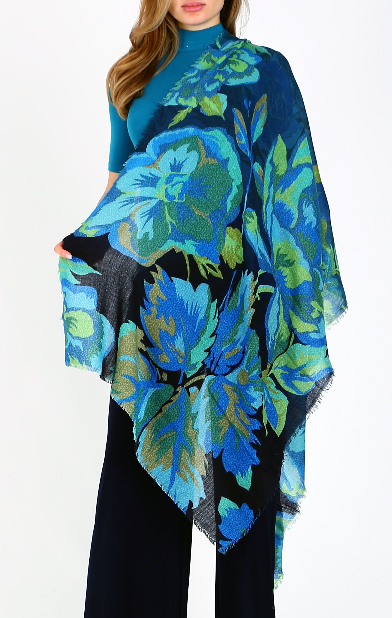 Красив шал от вълна и модал в десен Nocturnal Bloom