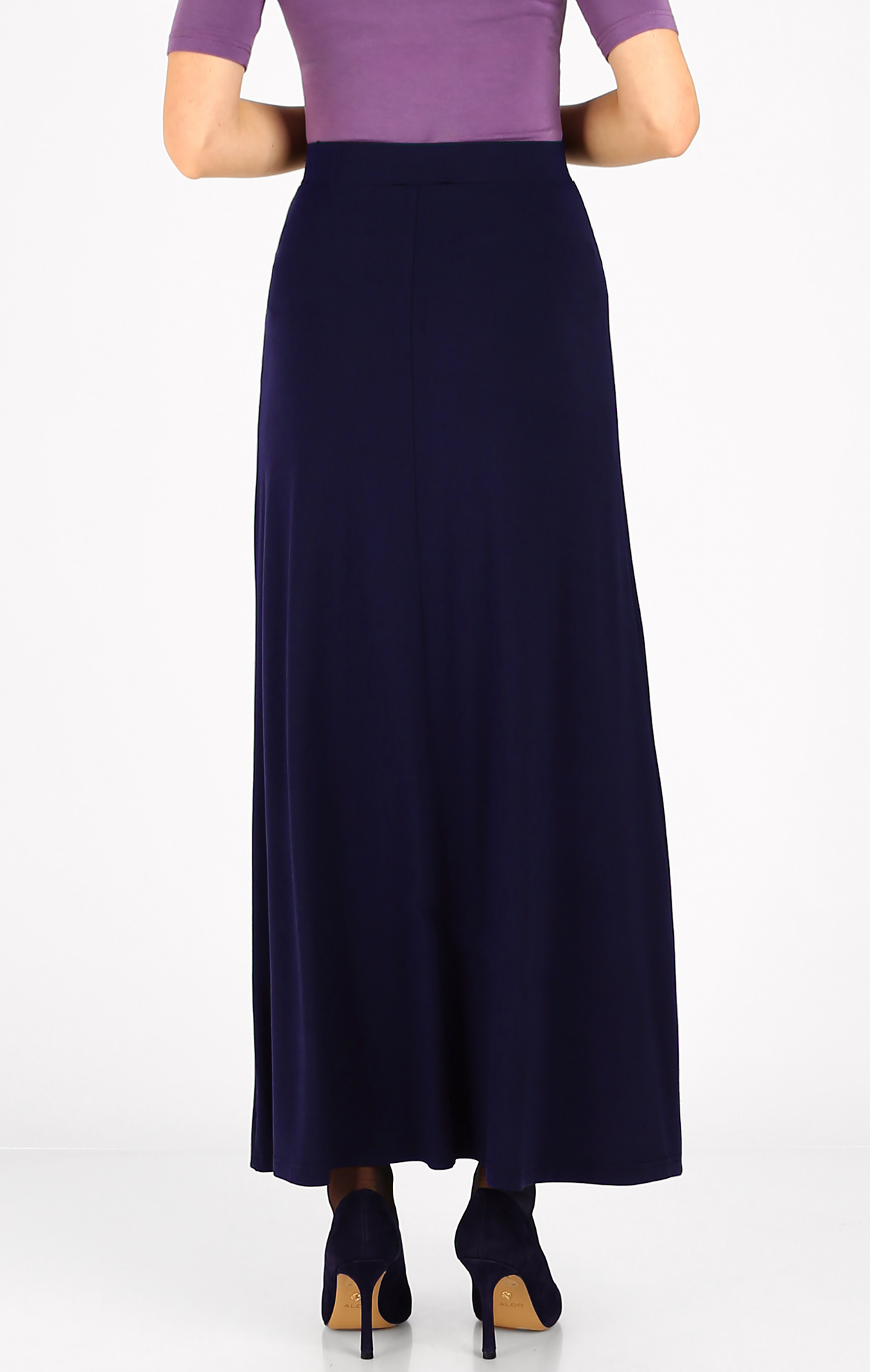 Елегантна макси пола с изчистена линия, изработена от гладко, тежко падащо жарсе в цвят Night Sky. Деликатно разкроената линия подхожда на всяка фигура, а широкият ластик в талията осигурява естествено прилягане и удобство през целия ден. Полата е с антистатичната подплата за по-голям комфорт и безупречен силует. Комбинира се лесно с блуза или аксесоари от богатата колекция на Daphne и е подходяща както за ежедневието, така и за вечерни излизания.