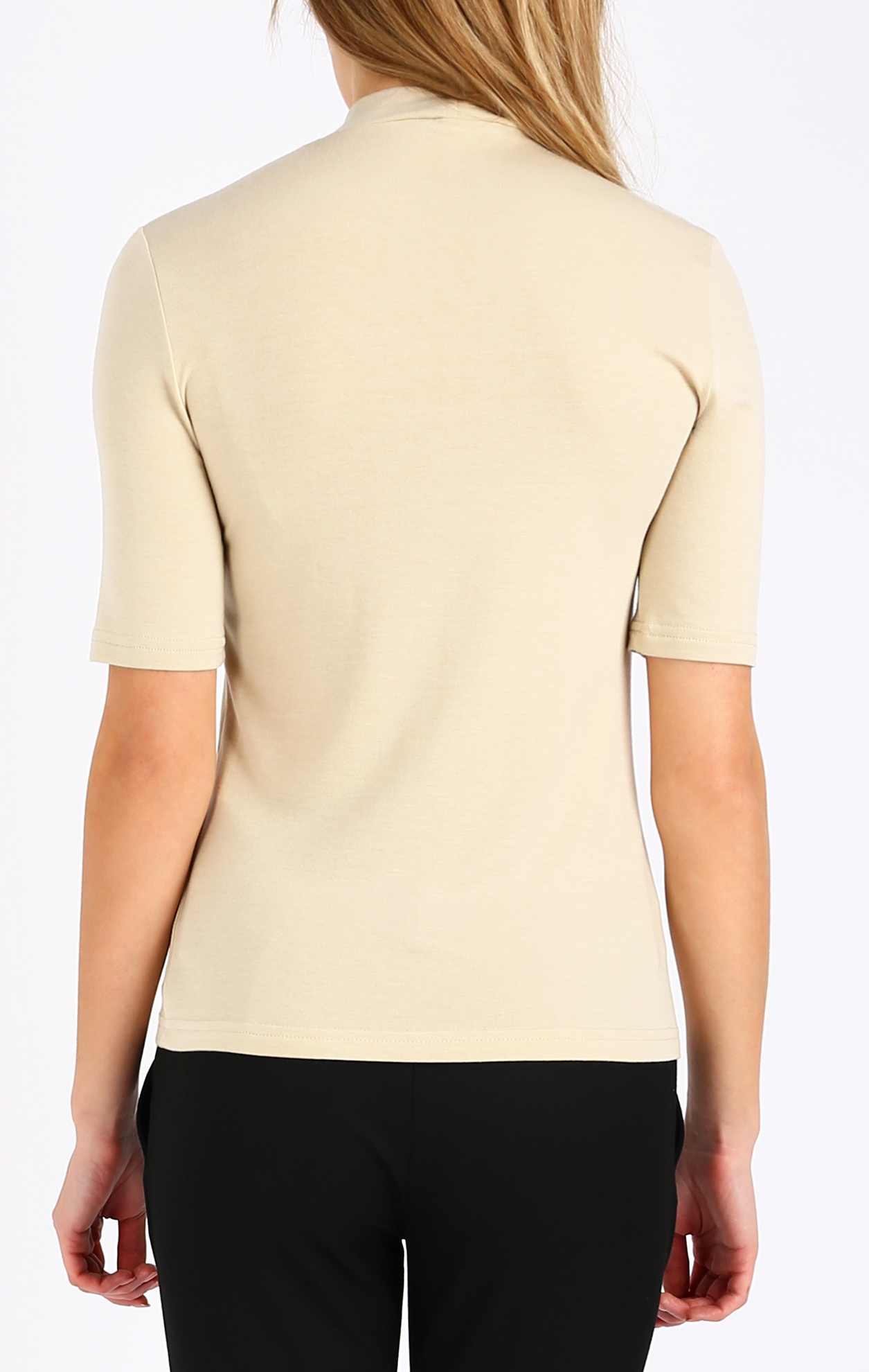Топла и изключително комфортна блуза от мека и еластична трикотажна материя в цвят Cloud Cream. Материята е лека и нежна на допир, с високо съдържание на вискоза и e произведена по специална поръчка на Daphne. Моделът е втален и фино приляга по тялото, ниската поло яка и къс ръкав превръщат модела в незаменим за всеки гардероб, за всеки стил и сезон. Комбинират се с лекота с разнообразни стилни визии - с елегантен панталон, дълга пола, пуловер или с деним.