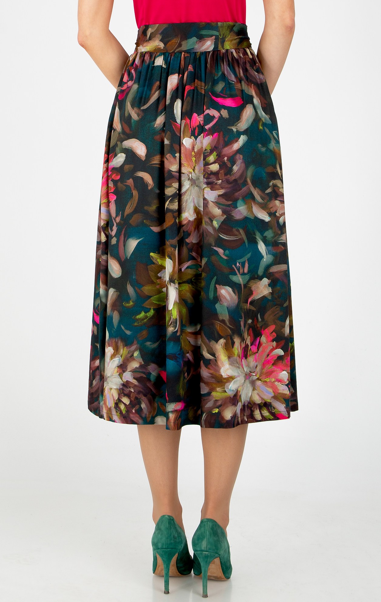 Миди пола от луксозна вискоза в зелено “Ocean Depth” с живописен флорален принт