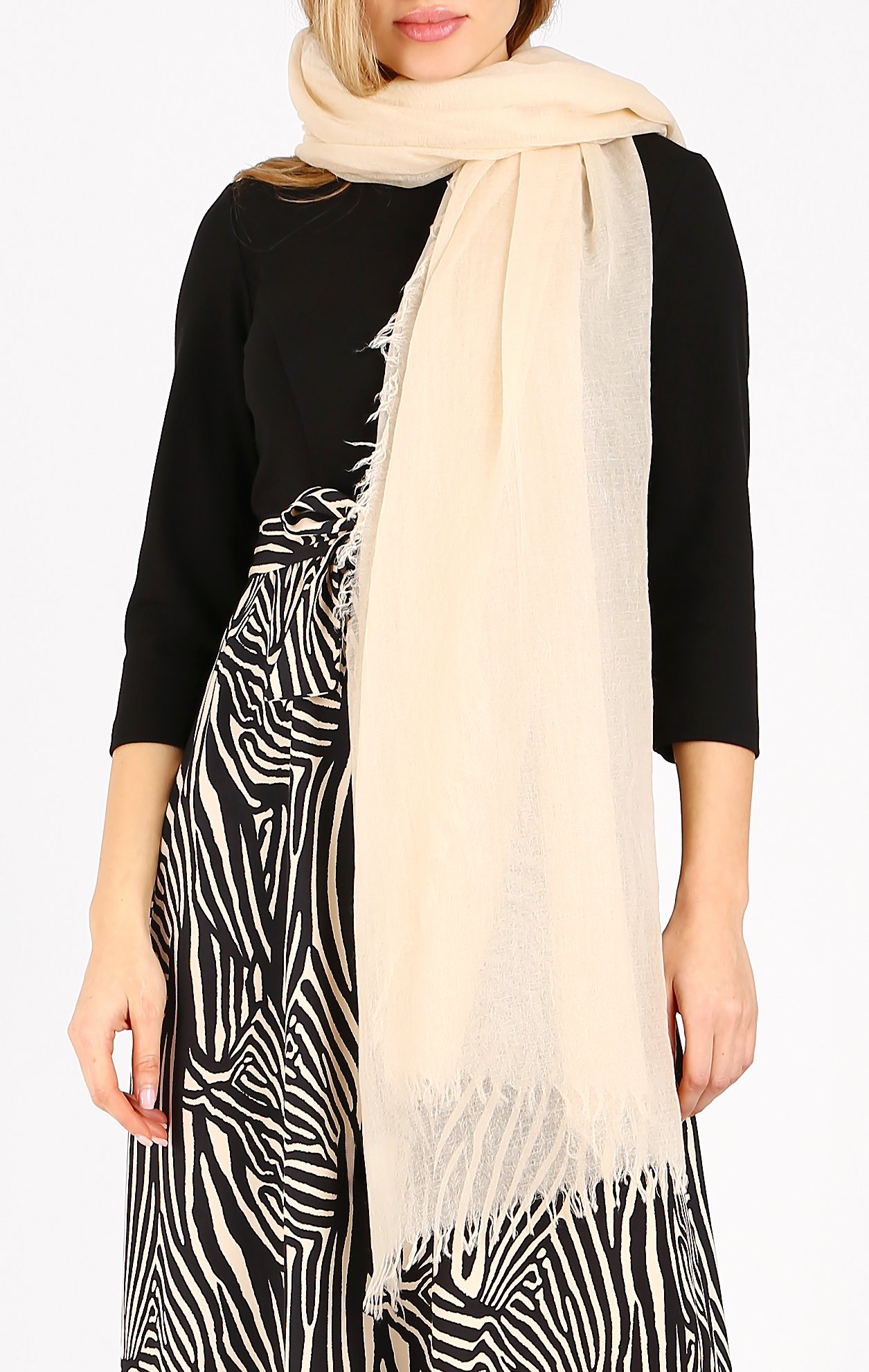 Нежен и елегантен шал Cream Vanilla Dream от 100% фина вълна в деликатен нюанс “ванилов крем”. Топлата материя обгръща нежно рамената, като създава усещане за комфорт и неподправена елегантност, а нежните ресни по края добавят деликатен завършек и изтънчено внимание към детайла. Идеален както за ежедневни, така и за по-официални комбинации, “Cream Vanilla Dream” е аксесоар, който носи топлина и изчистена естетика.