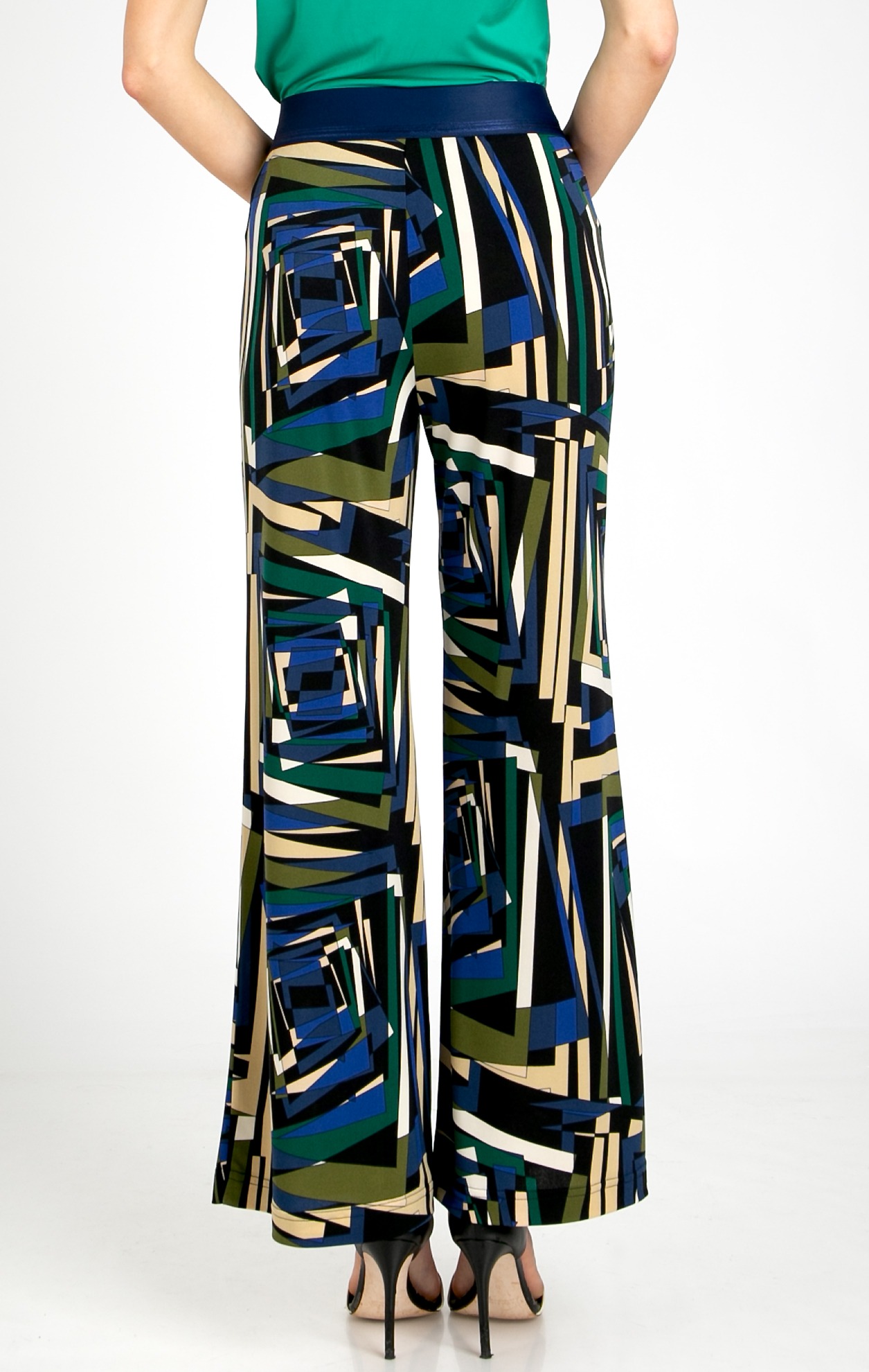 Панталон от трикотажна материя с абстрактен геометричен принт в цвят Royal Blue, Green Olive и Ecru