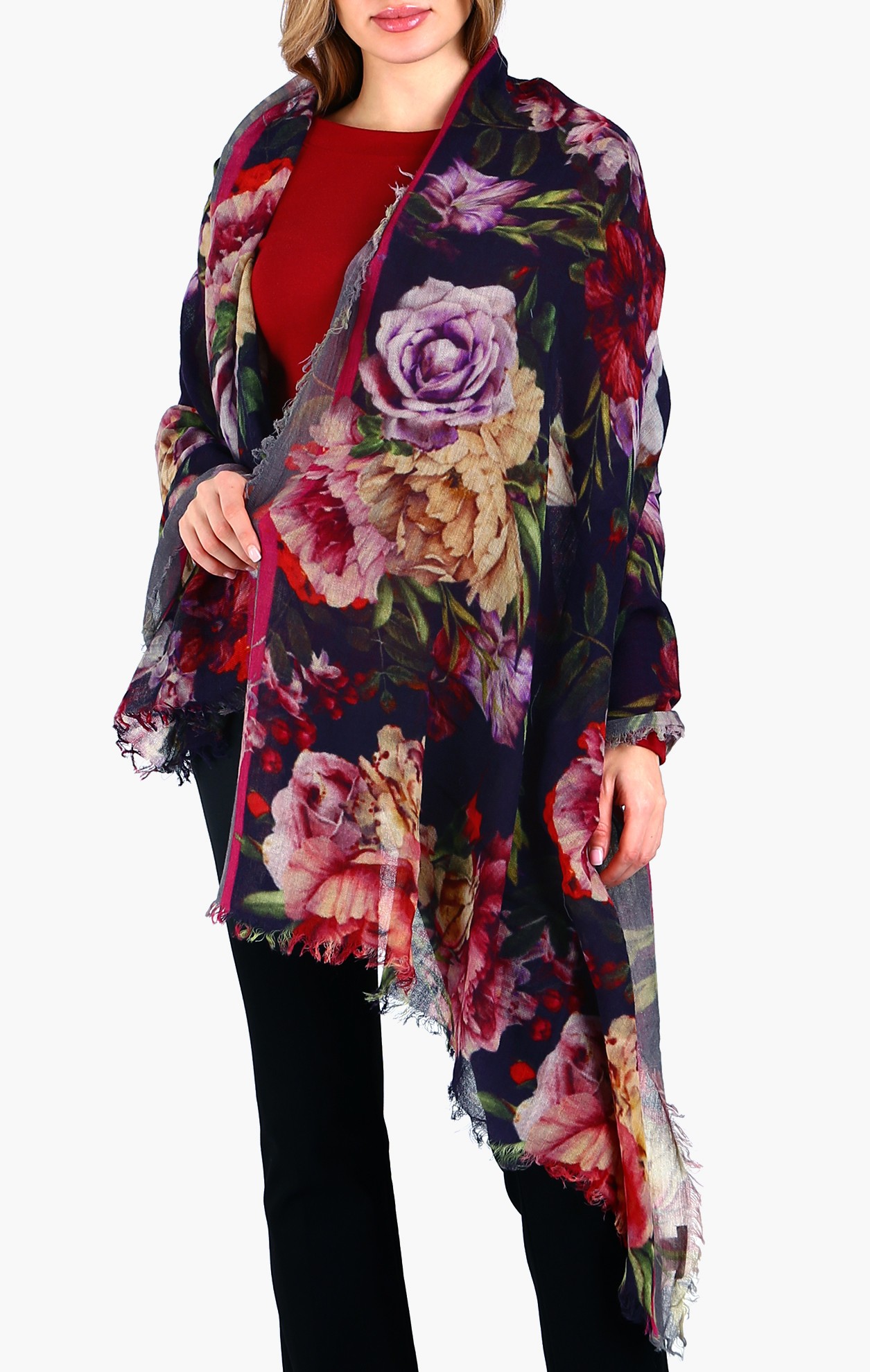 Живописен флорален шал от вълна и модал Midnight Roses Whisper